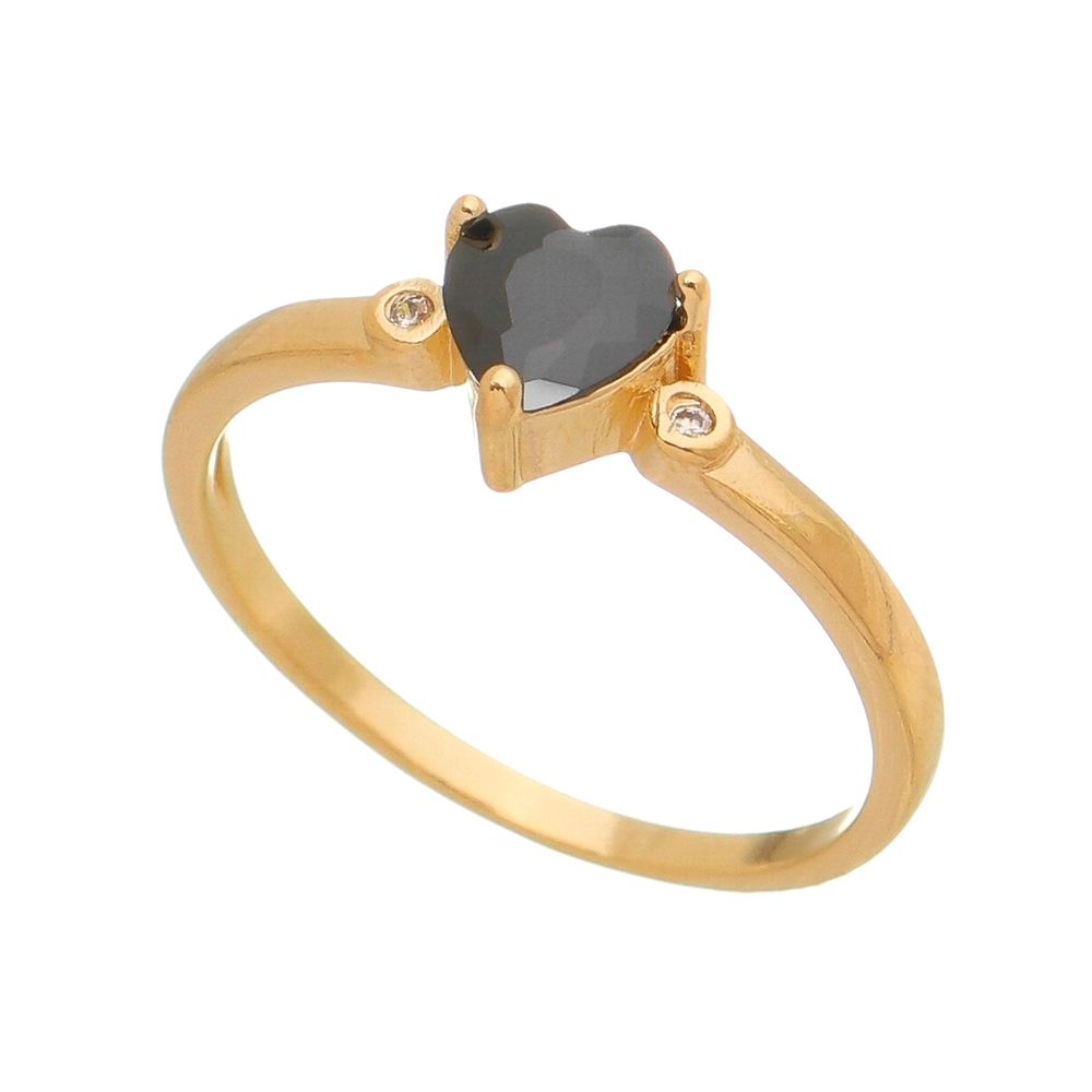 ANEL CORAÇÃO PRETO FOLHEADO A OURO 18K COM ZIRCONIA LATERAL