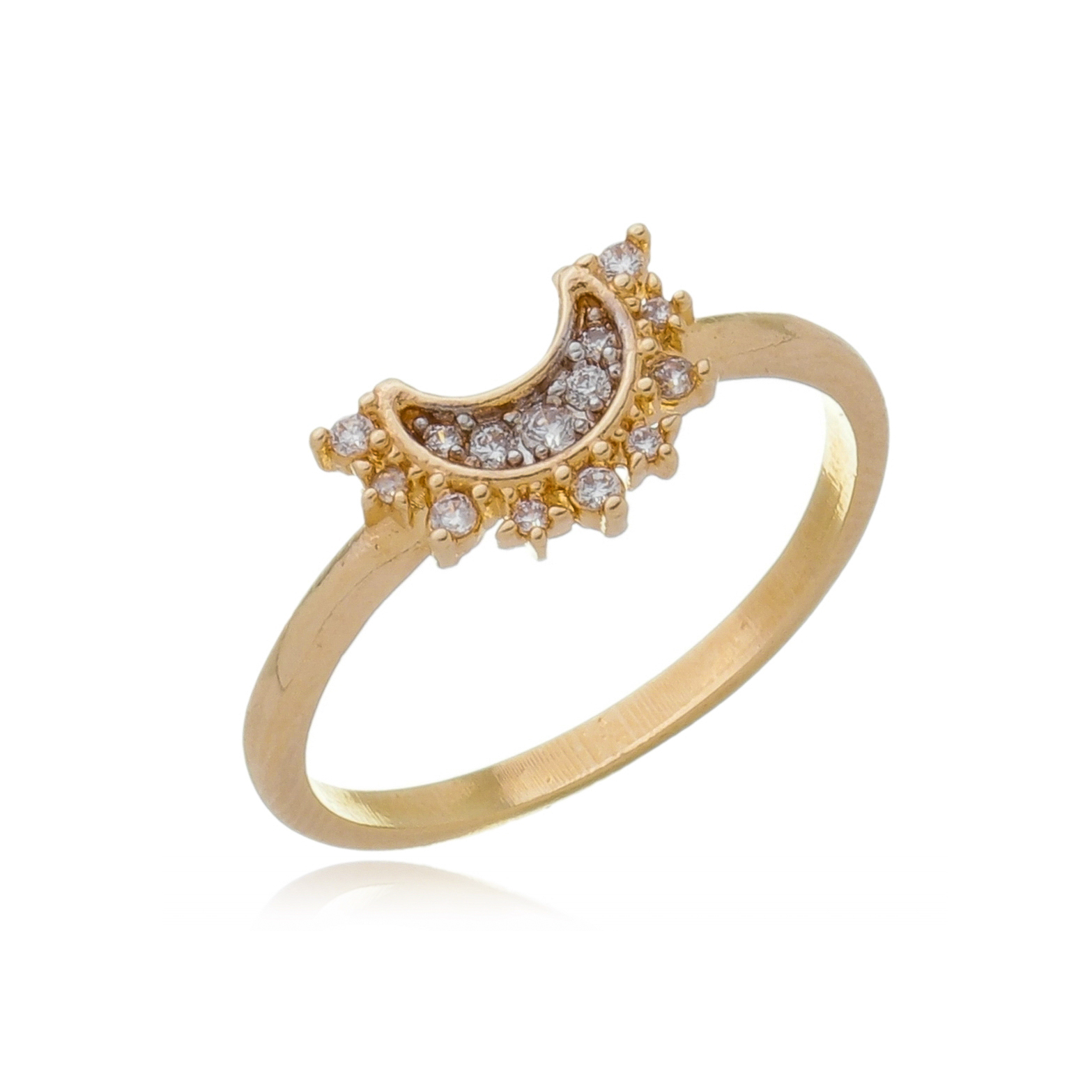 ANEL DUPLO LUA E SOL FOLHEADO A OURO 18K COM ZIRCÔNIAS