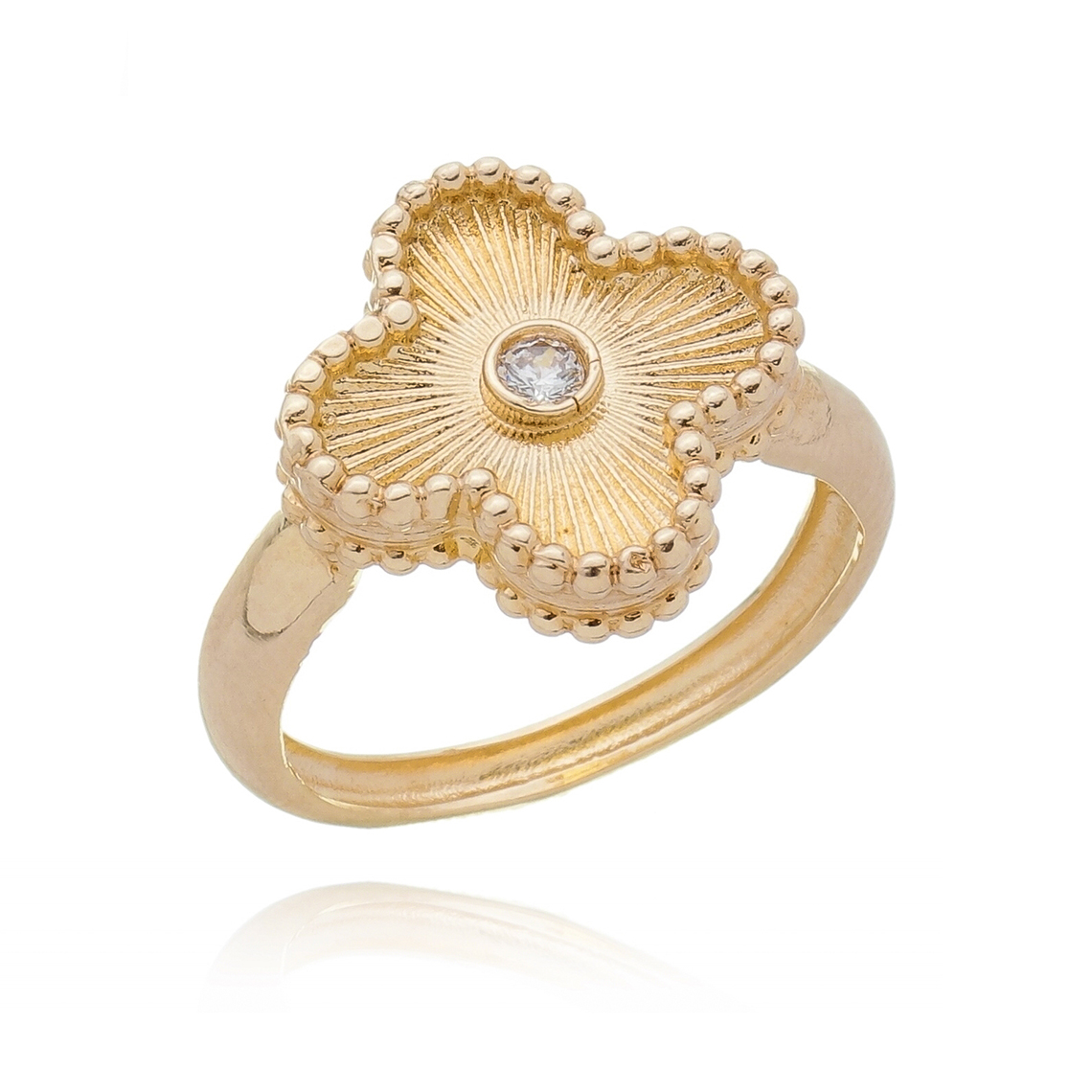 Anel Flor Detalhada com Zircônia Folheado a Ouro 18k