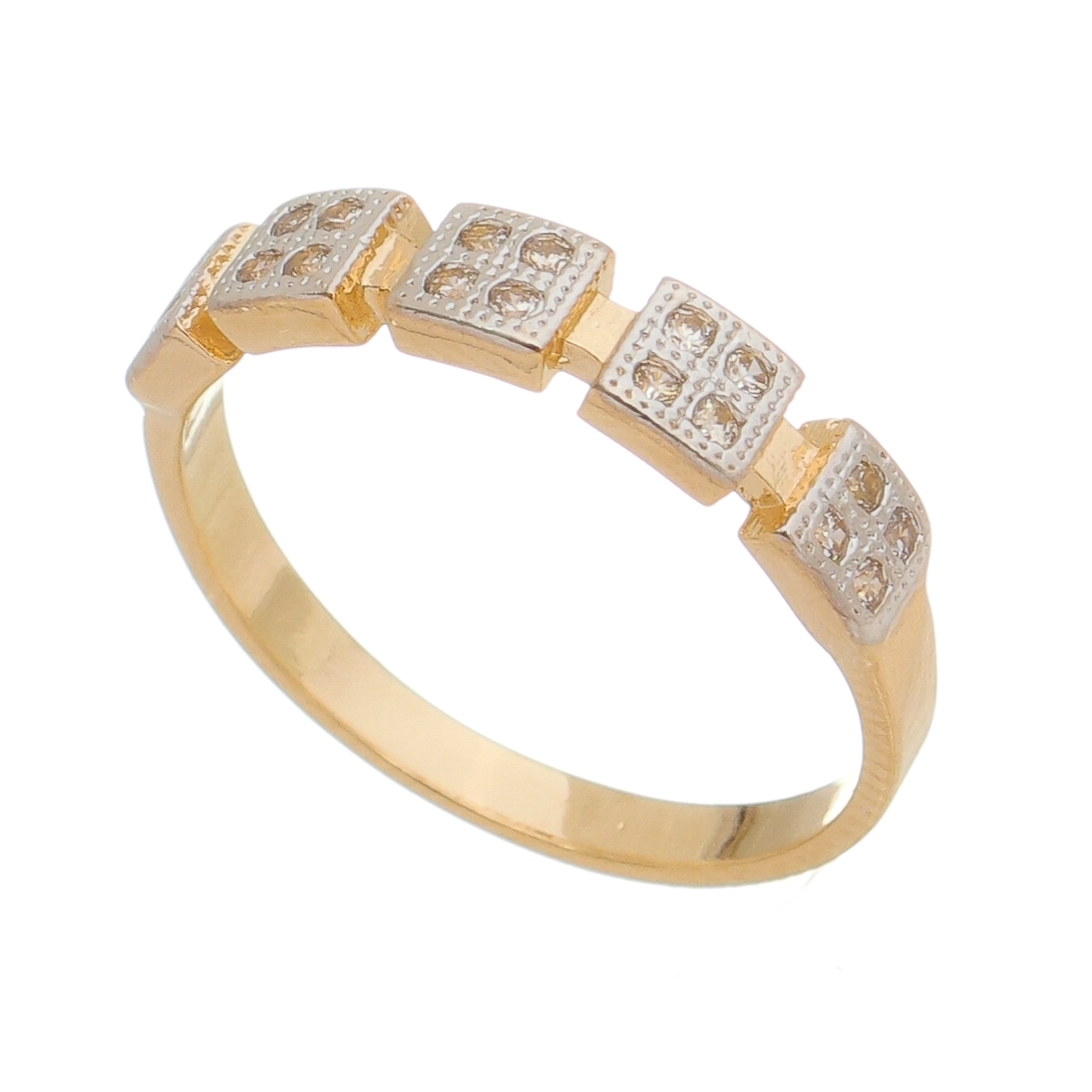 ANEL FOLHEADO A OURO 18K COM 5 QUADRADOS E ZIRCÔNIAS