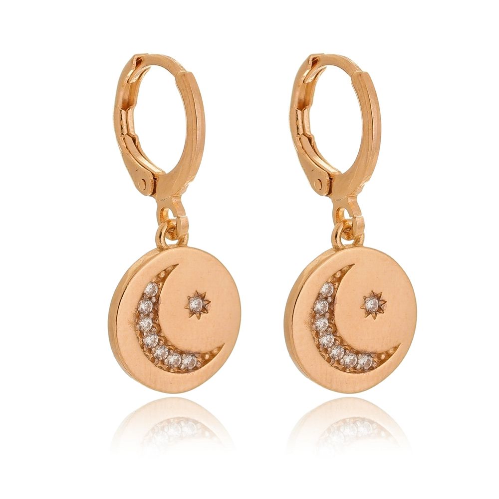 Argola folheada a ouro 18k com lua e estrela com zircônias.