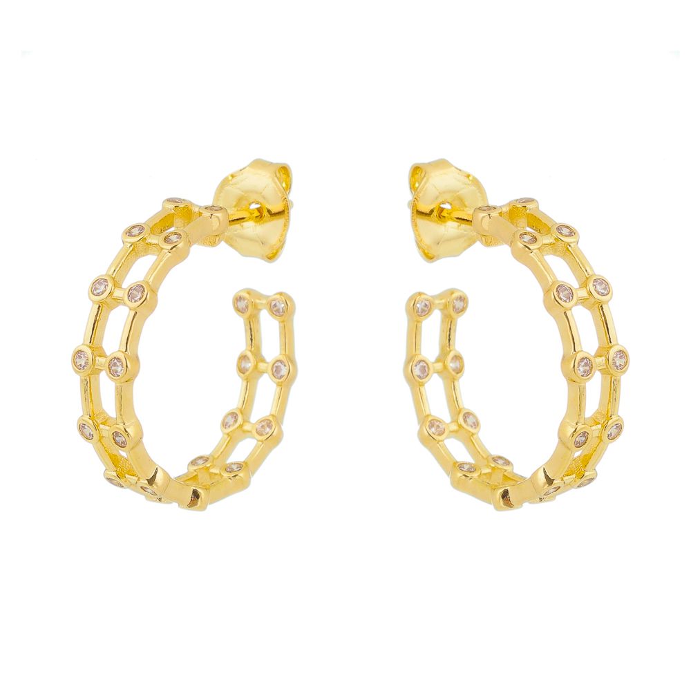 Argola folheada a ouro 18k vazada com zircônias.