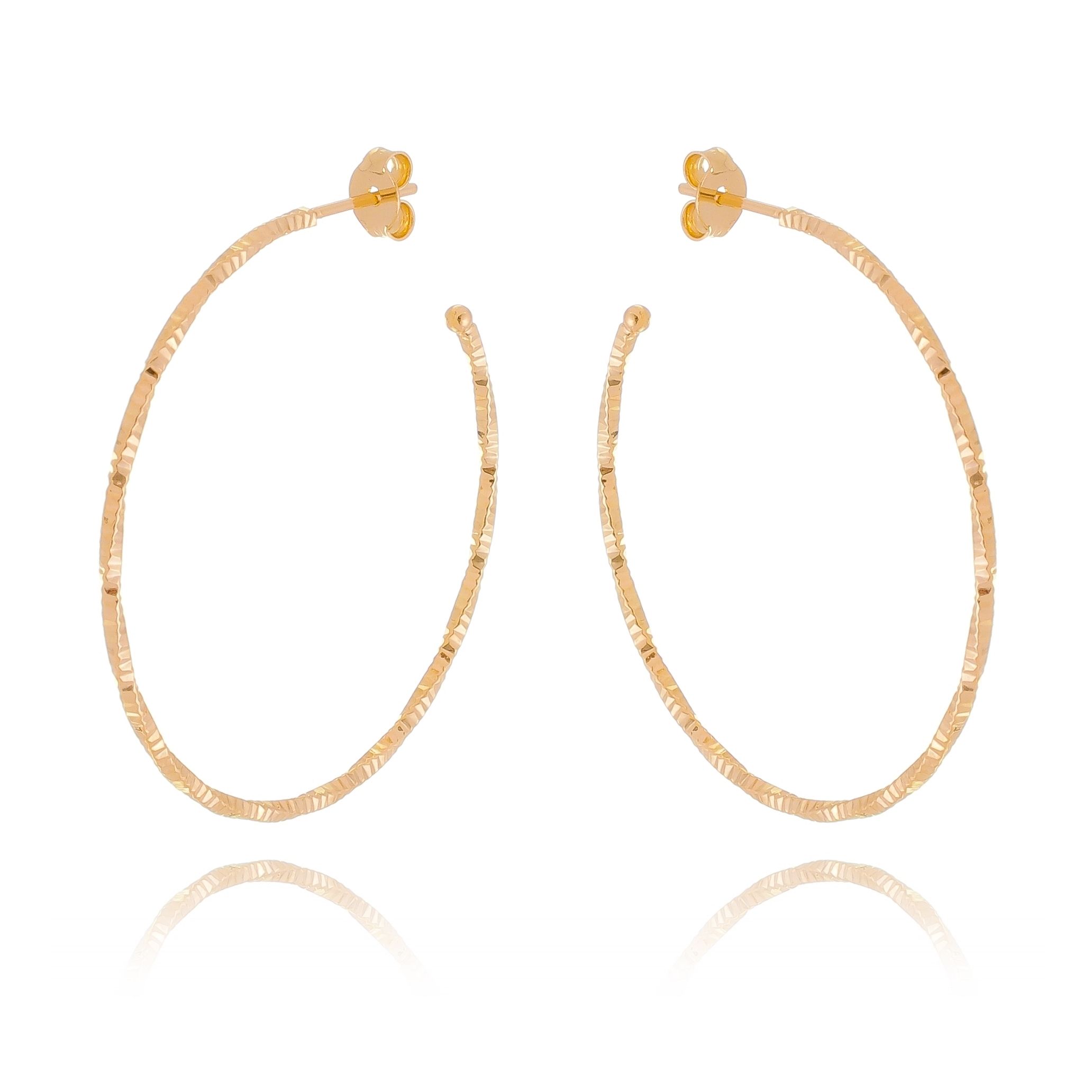 Argola torcida com trabalho diamantado folheado a ouro 18k.