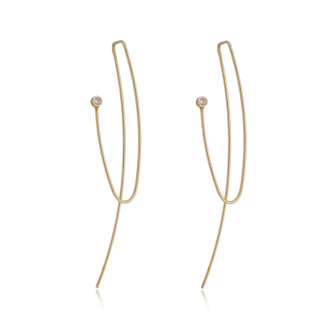 Brinco Abstrato Fio Liso com Zircônia Folheado a Ouro 18k
