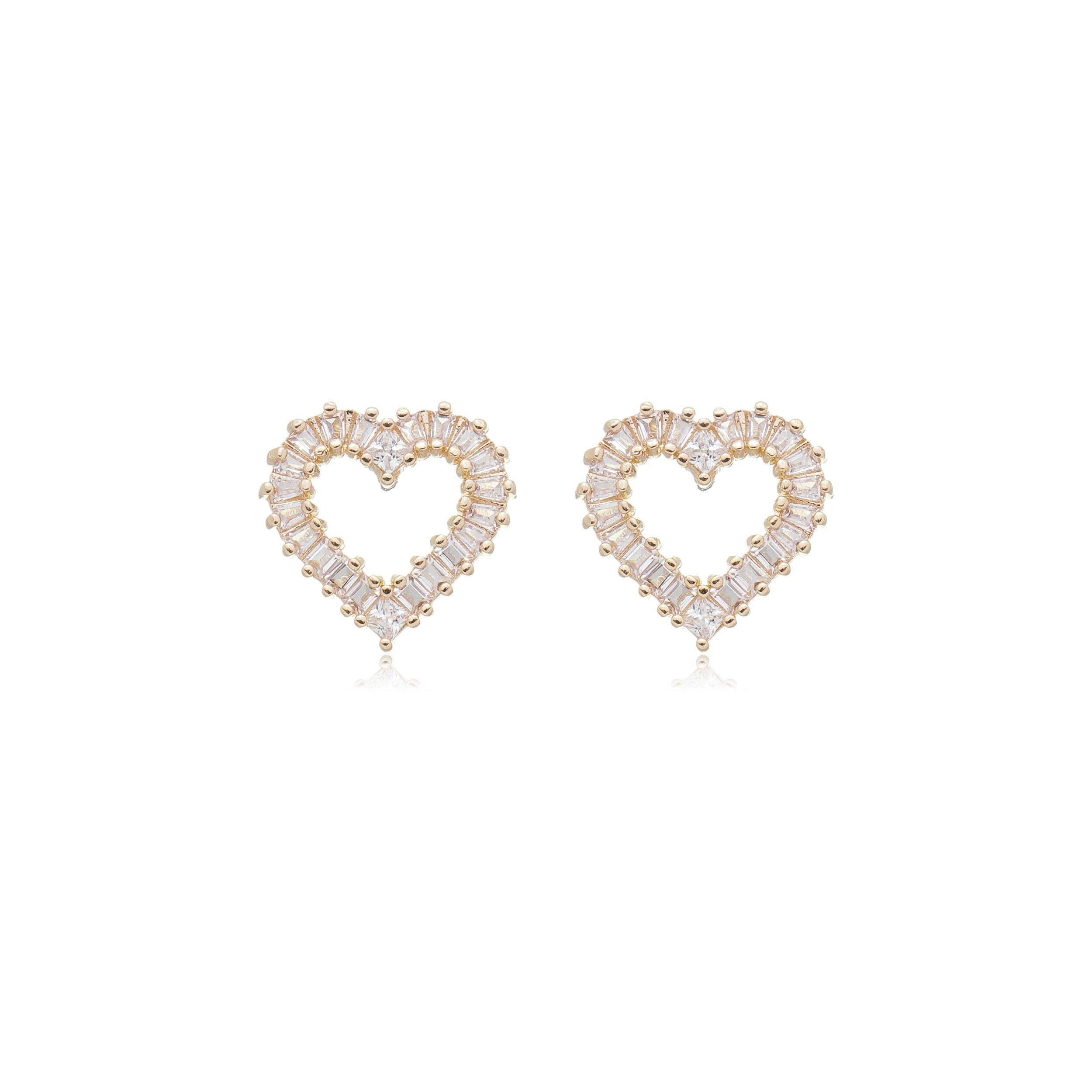 BRINCO CORAÇÃO COM ZIRCÔNIAS BAGUETE FOLHEADO A OURO 18K