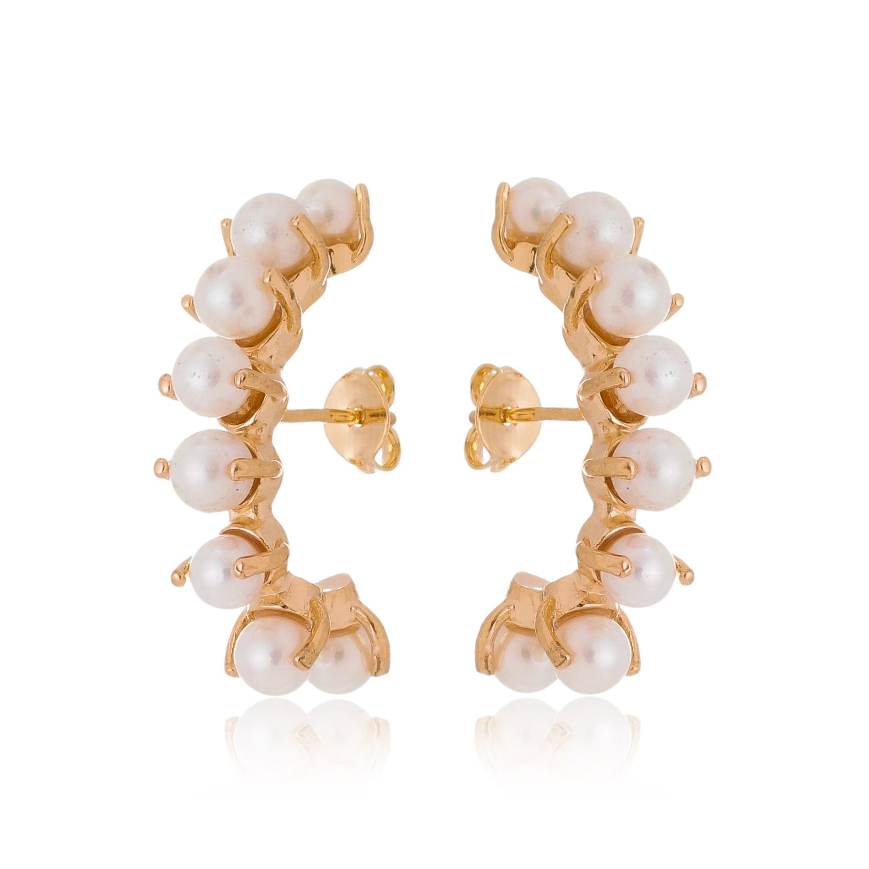 Brinco ear hook folheado a ouro 18k com pérolas.