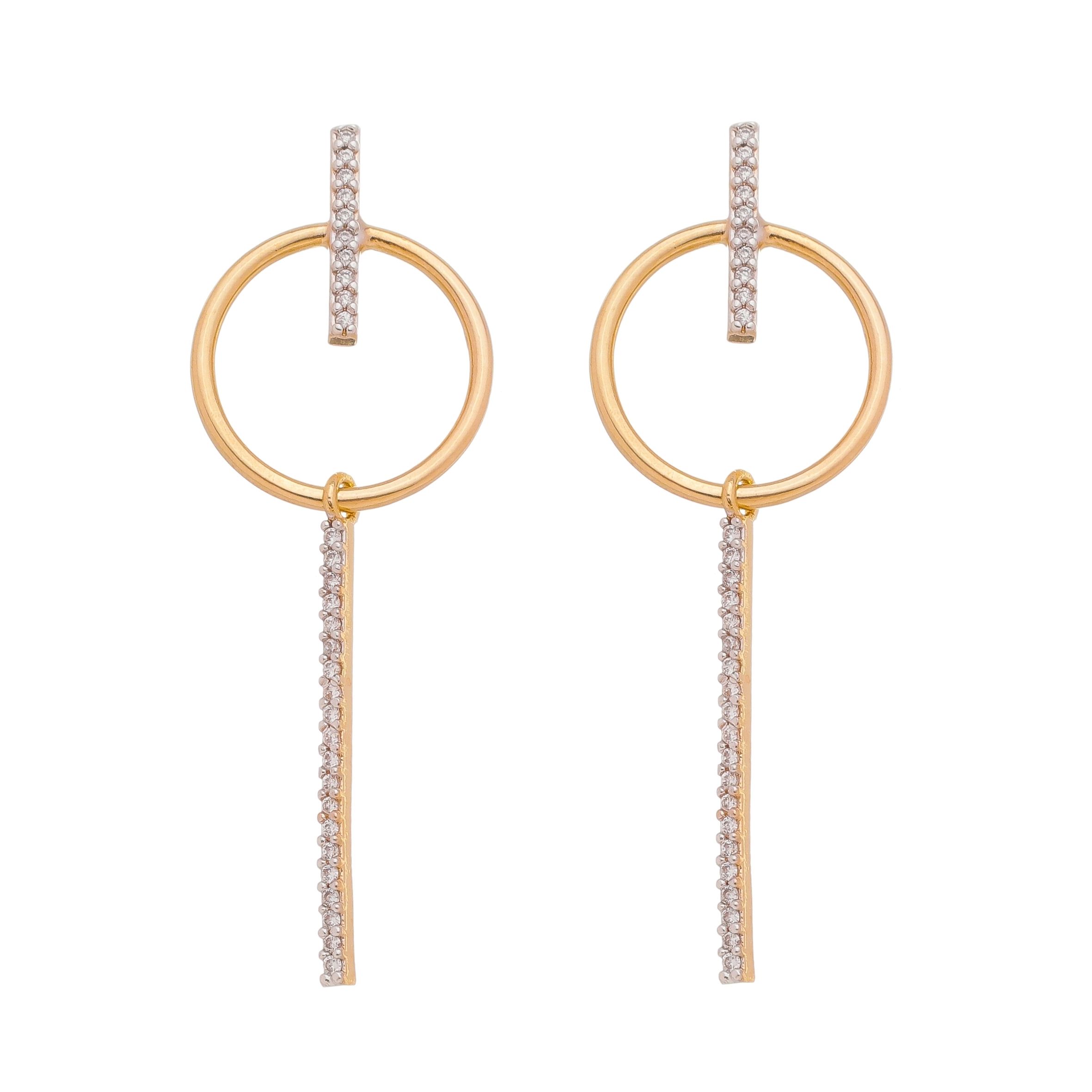 Brinco redondo com palito folheado a ouro 18k com zircônias.