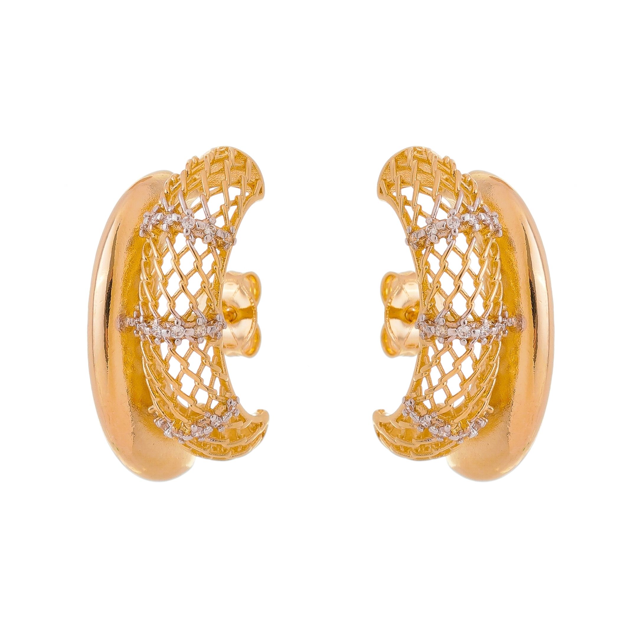 Brinco Ear Hook Tela com Zirconias em Ródio Folheado a Ouro 18k.