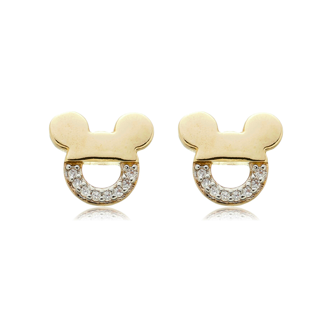 Brinco infantil Mickey com zircônia folheado a ouro 18k