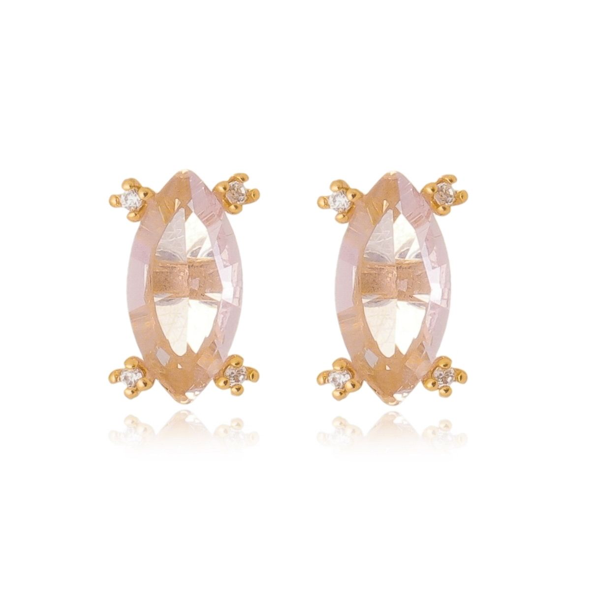 Brinco navete folheado a ouro 18k com zircônia rosa.