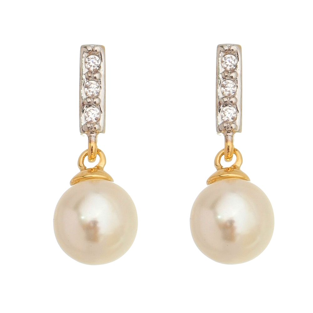 BRINCO PENDURADO FOLHEADO A OURO 18K COM PEROLA E ZIRCONIAS