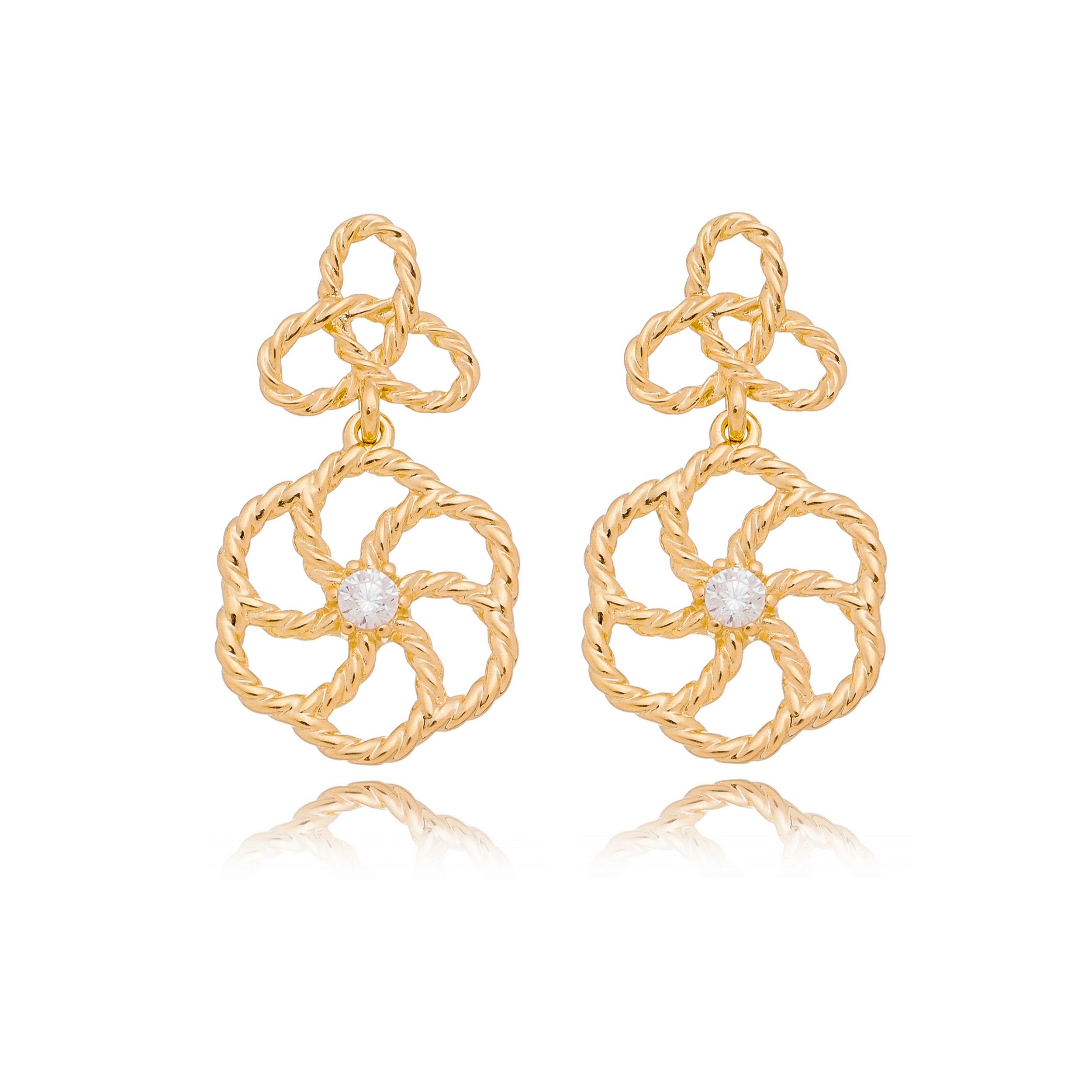 BRINCO TRABALHADO COM ZIRCÔNIA FOLHEADA A OURO 18K
