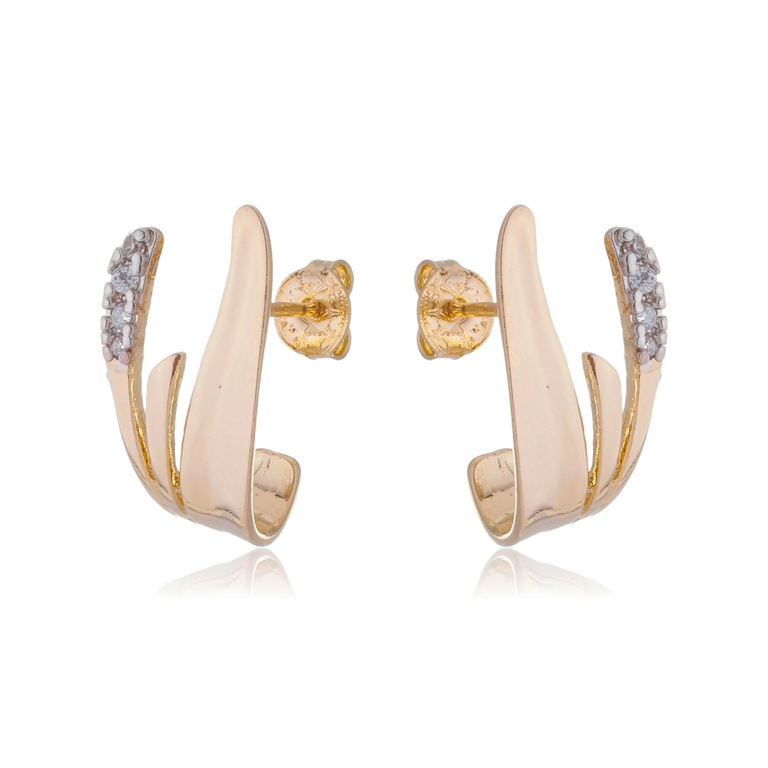 Brinco três pétalas cravajado com zircônia folheado ouro 18k