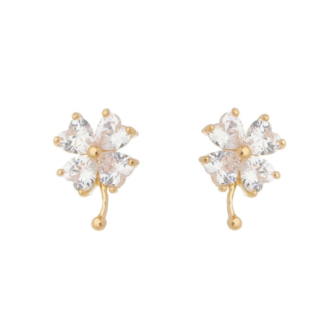 Brinco trevo de quatro folhas com zircônia folheado a ouro 18k.
