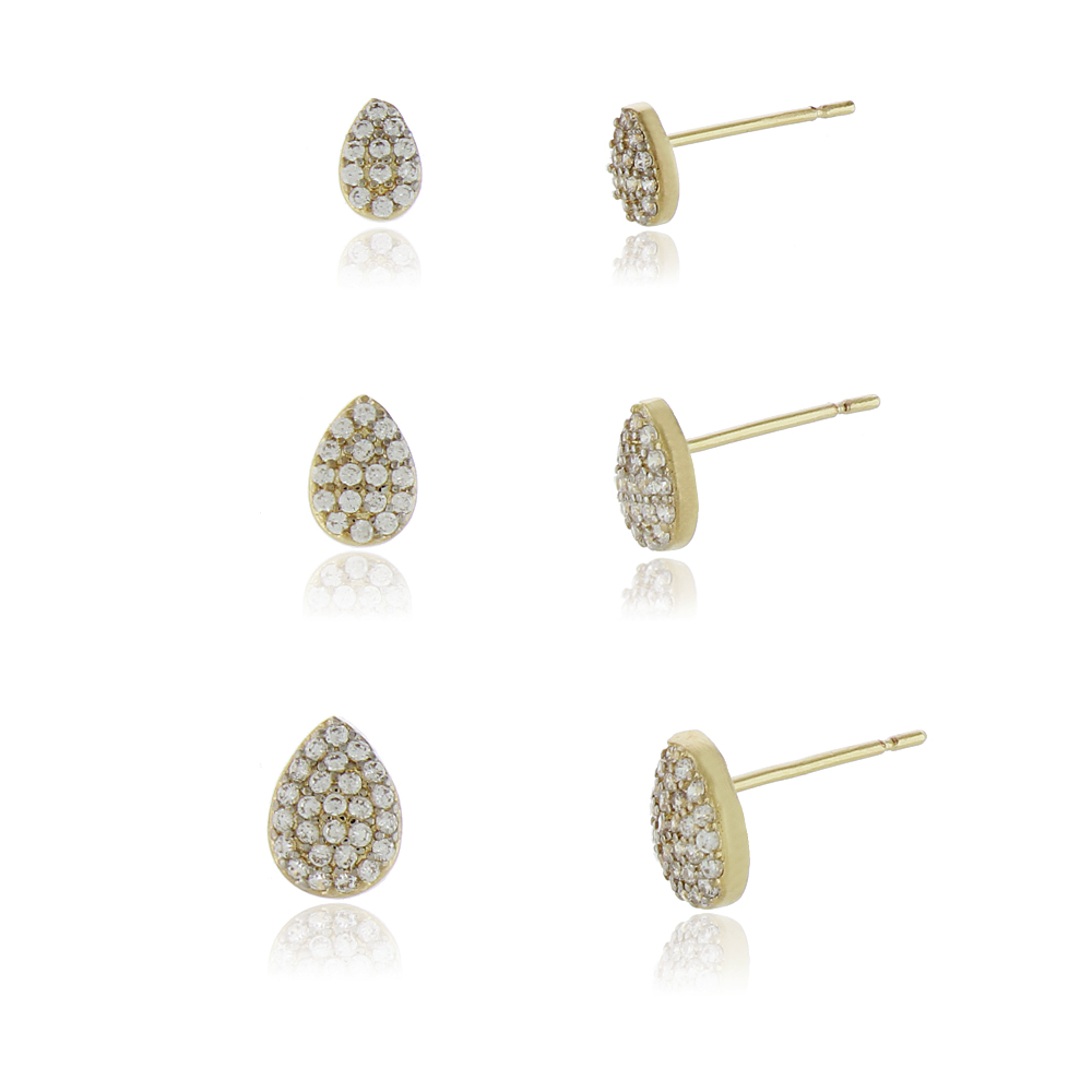 Brinco trio gota com zricônia folheado a ouro 18k