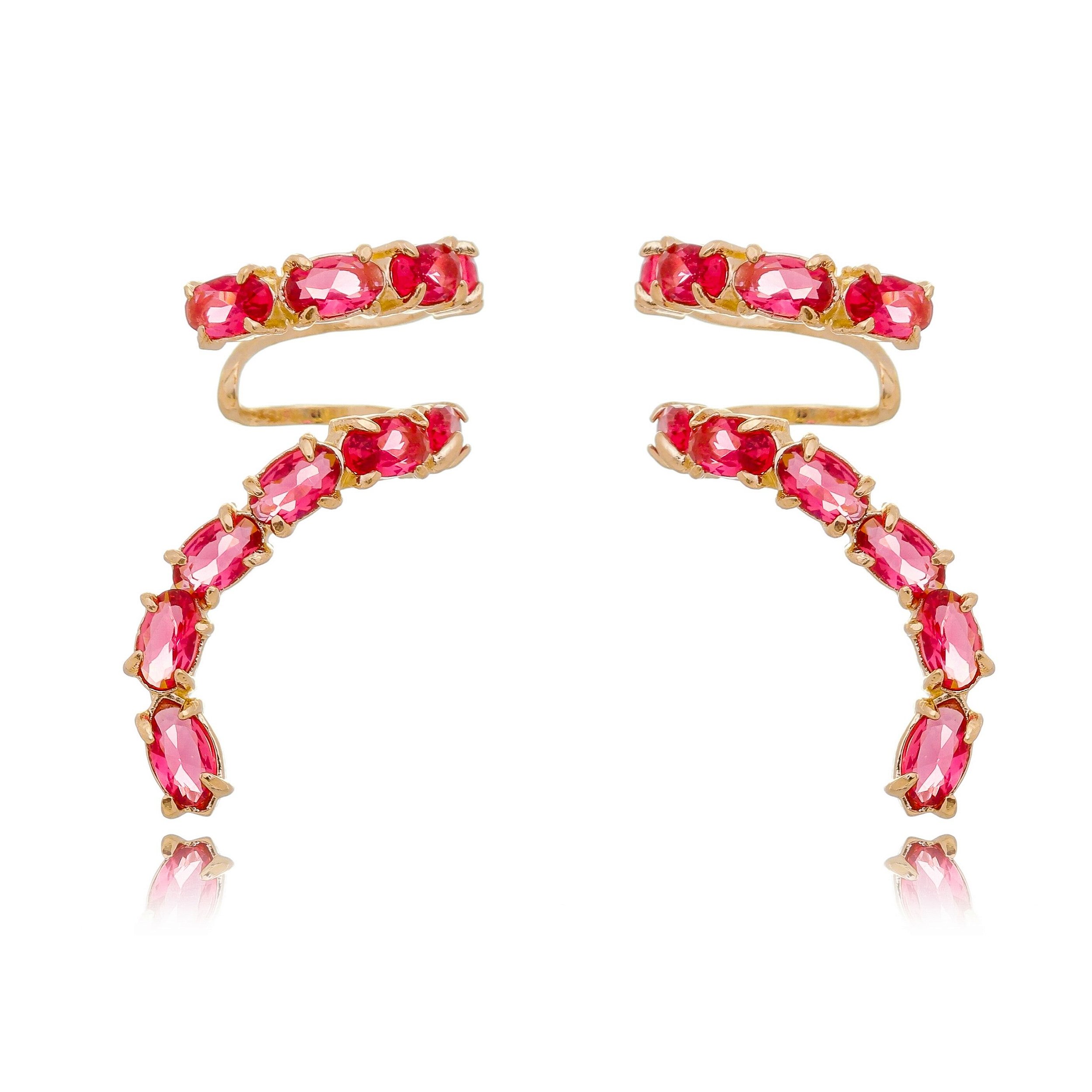Ear cuff piercing fake folheado a ouro 18k com zircônias rubis.