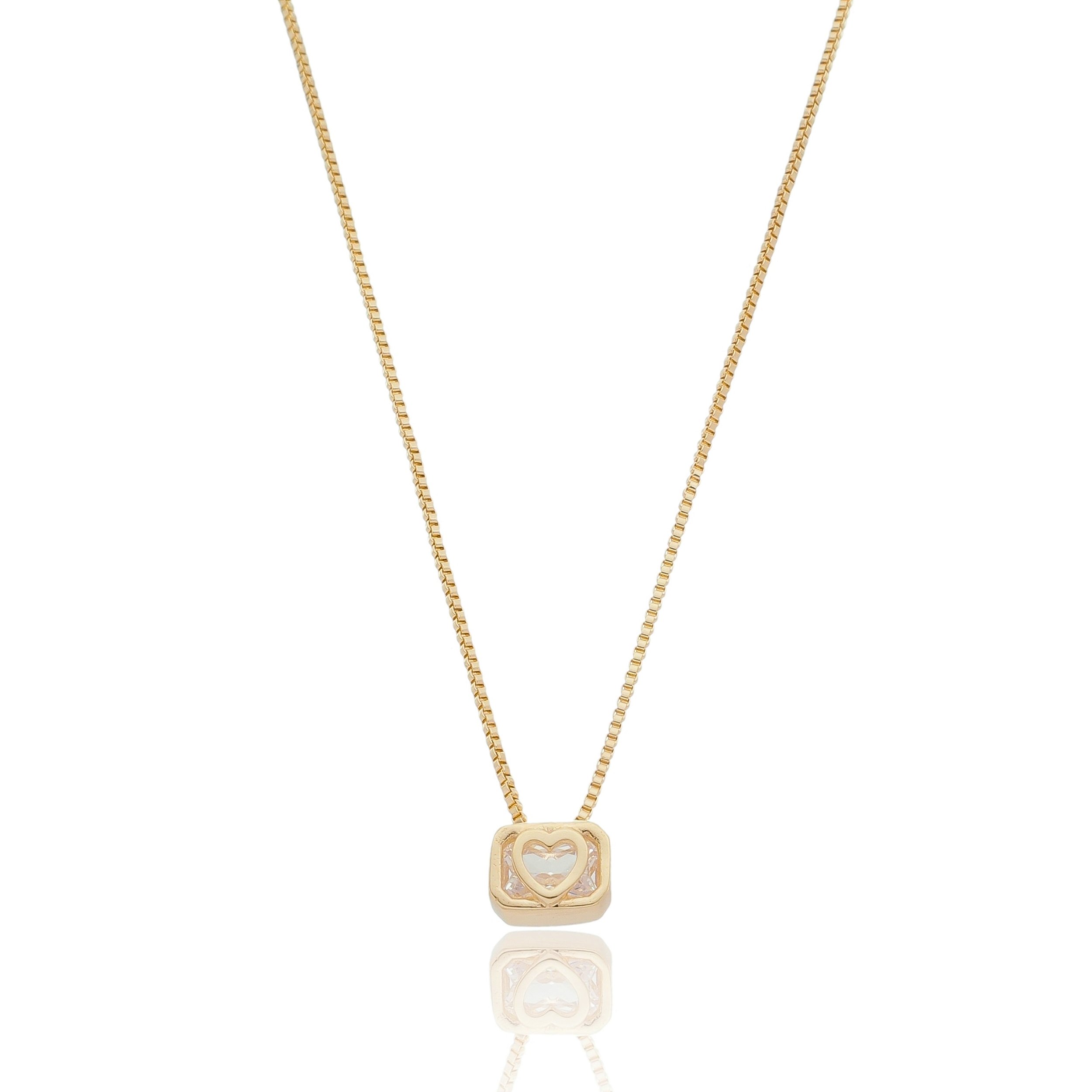 GARGANTILHA CAIXA RETANGULAR COM CORAÇÃO FOLHEADA A OURO 18K