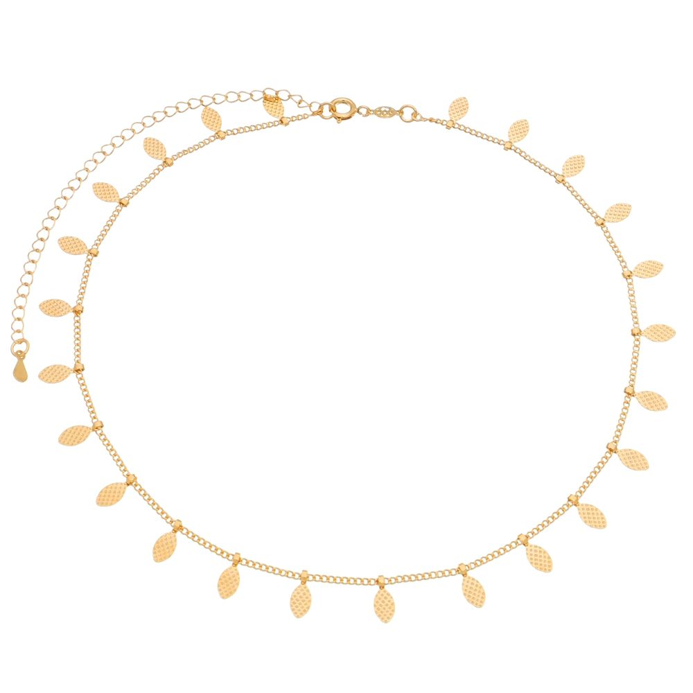 Gargantilha choker folhas folheada a ouro 18k.