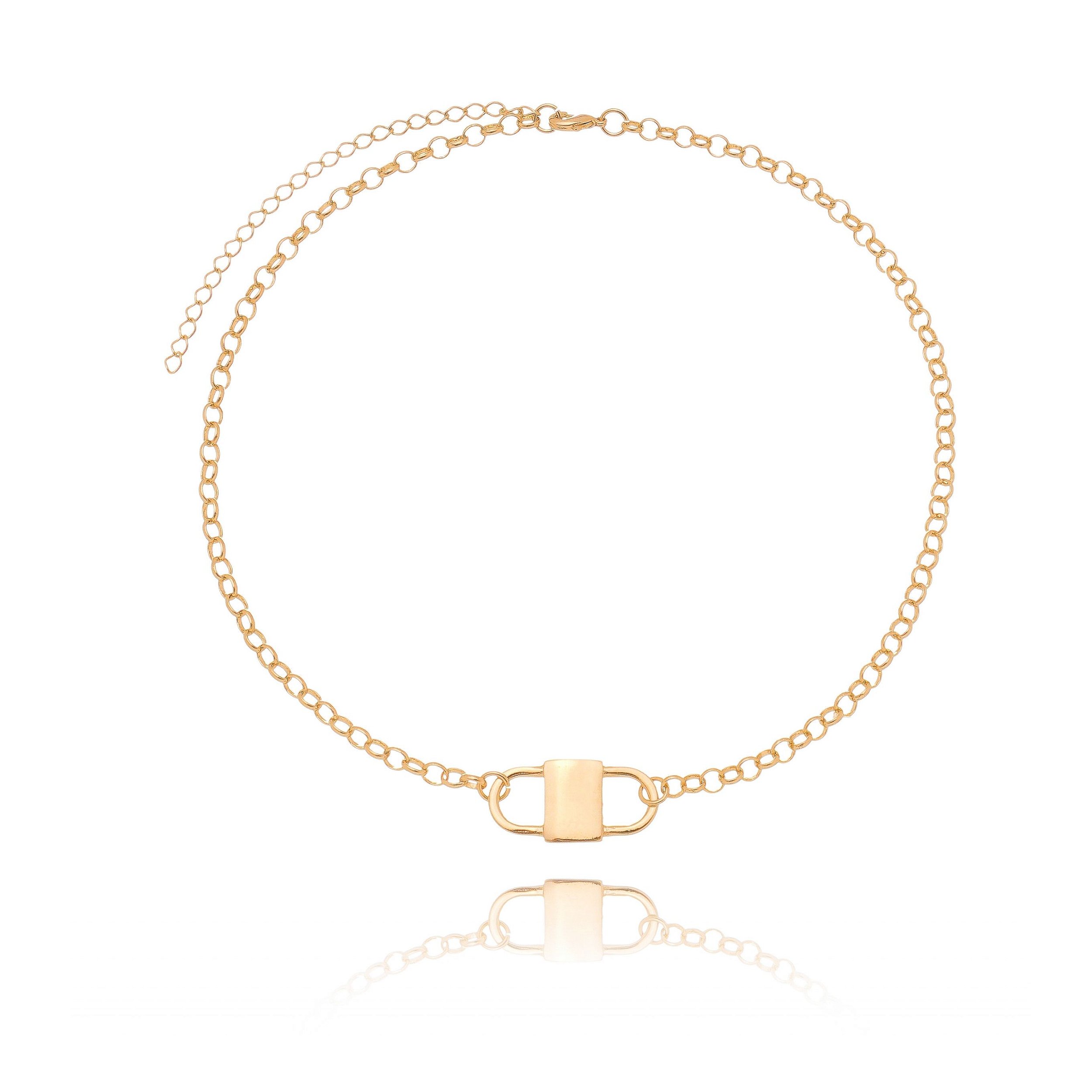 Gargantilha de elos com pingente folheada a ouro 18k.