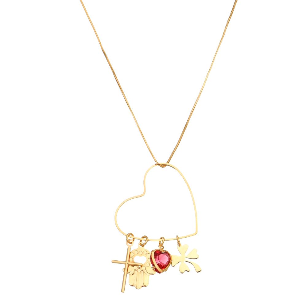 Gargantilha folheada a ouro 18k coração com pingentes.