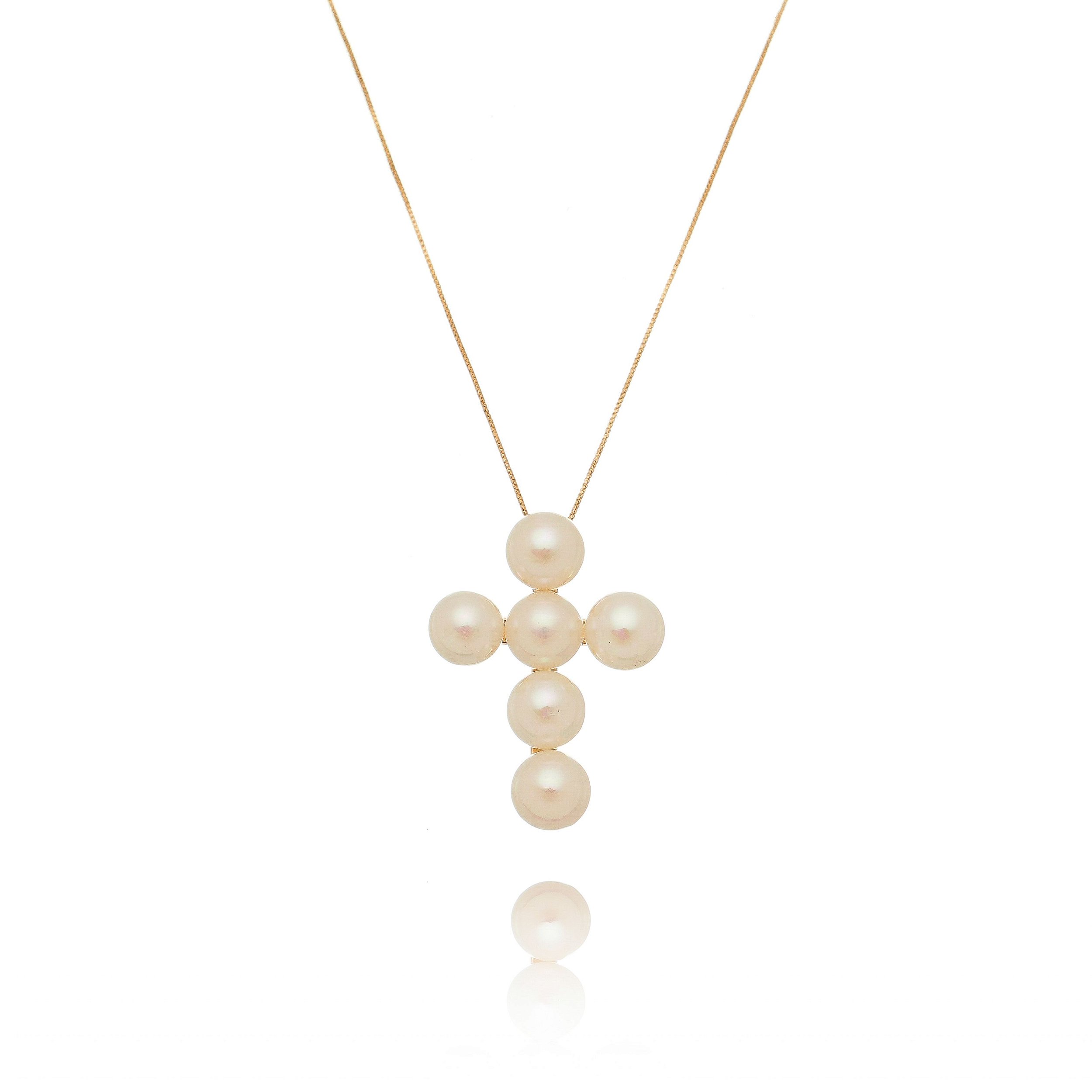 Gargantilha de cruz com pérolas folheada a ouro 18k.