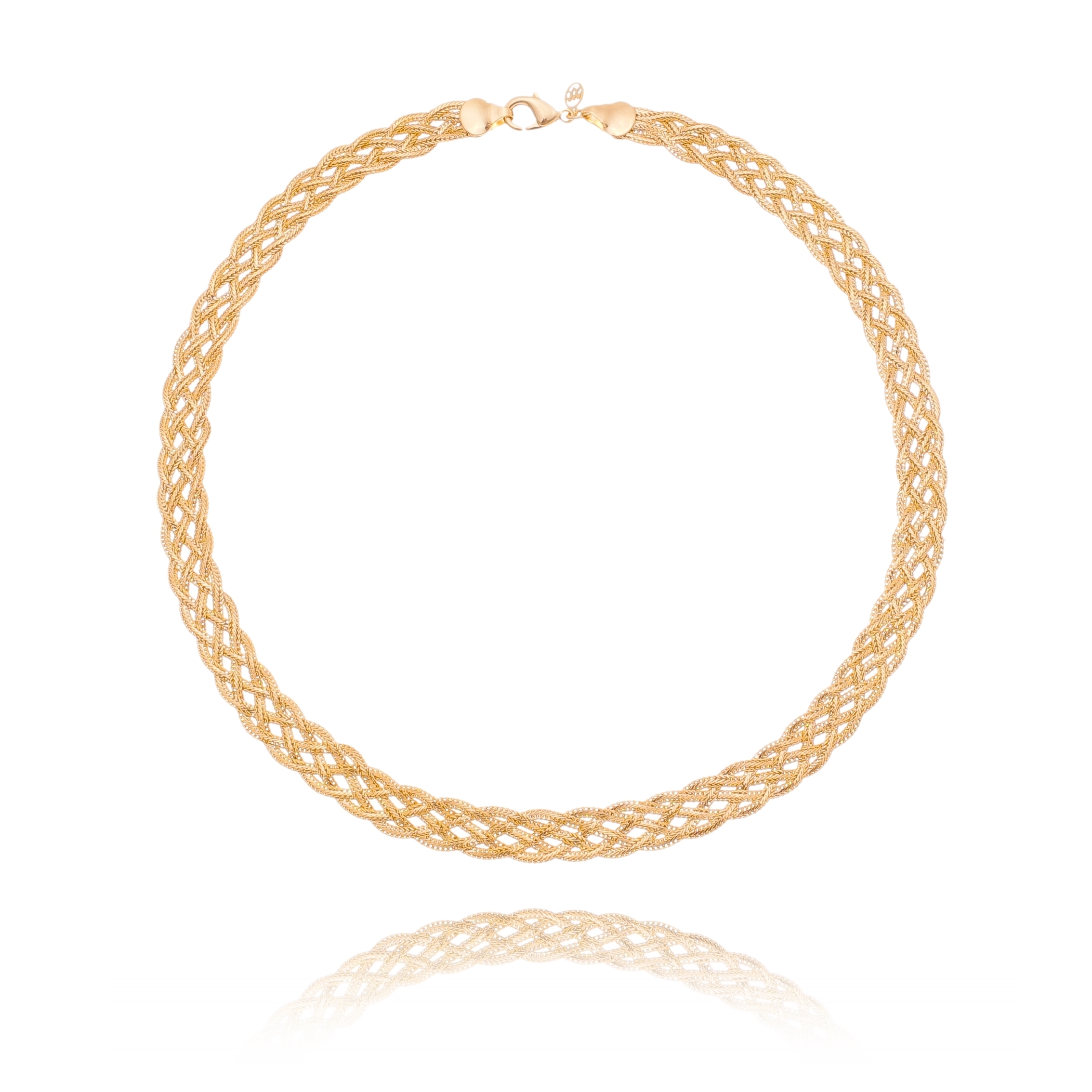 GARGANTILHA TRANÇADA 6 FIOS FOLHEADA A OURO 18K 45cm