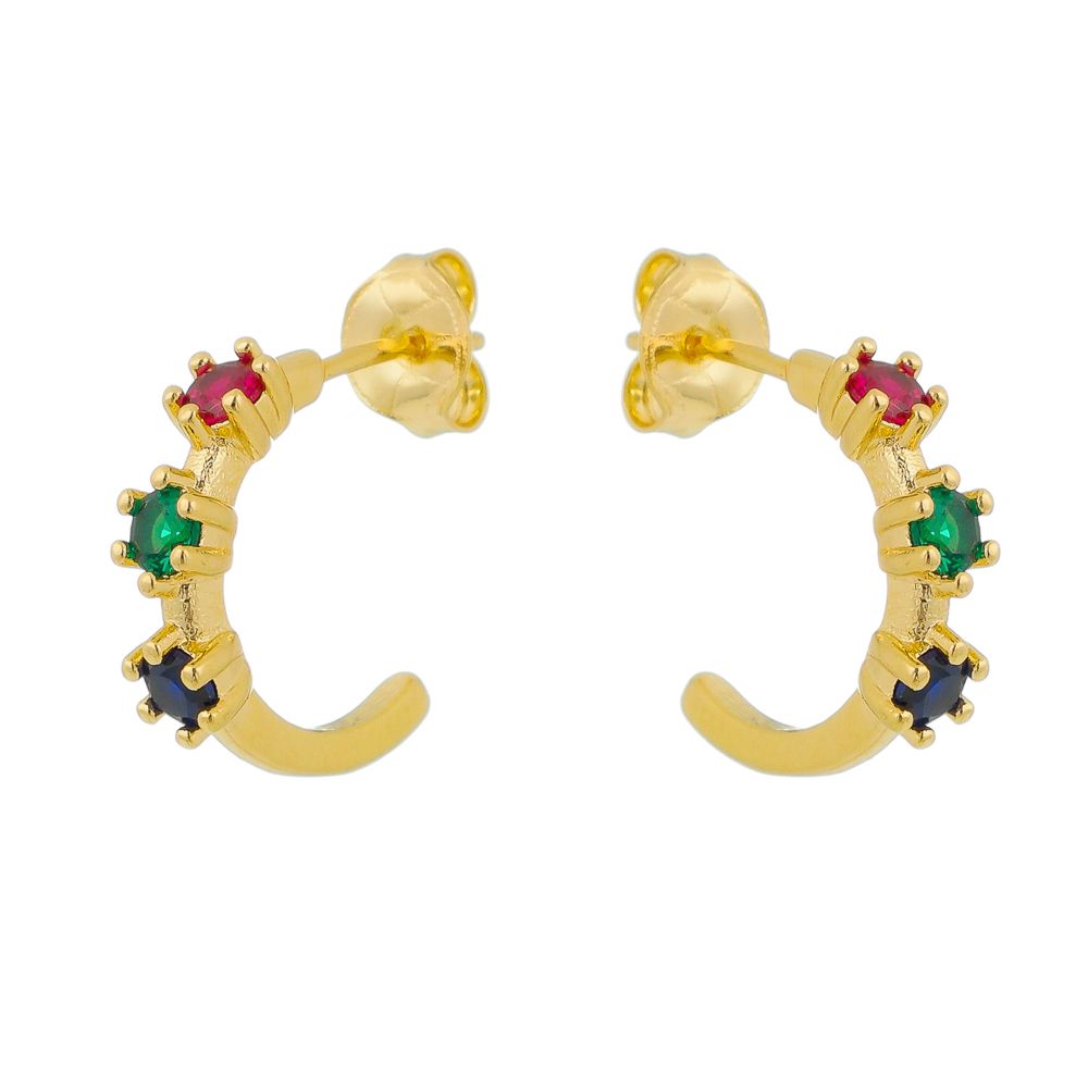 Argola folheada a ouro 18k com pedras coloridas.