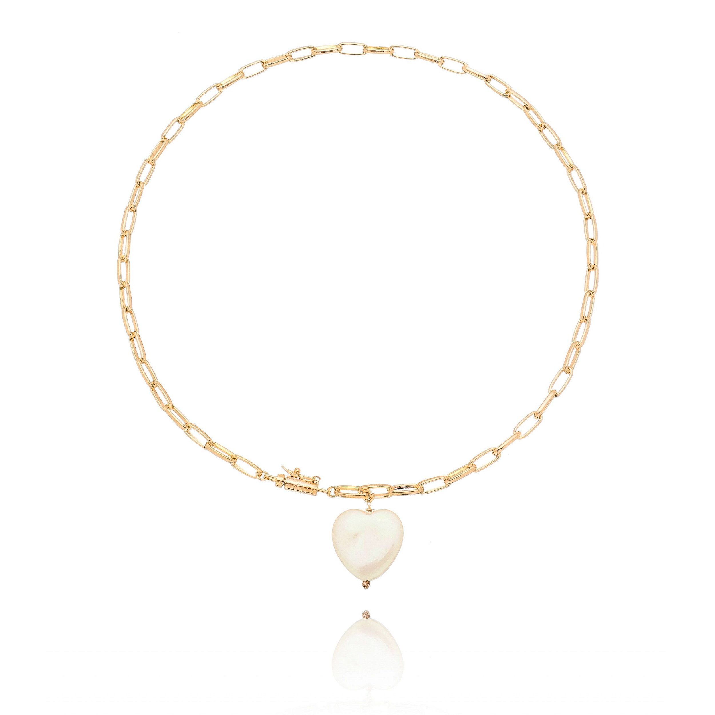 Gargantilha folheada a ouro 18k com corrente de elos ovais e coração pendurado.