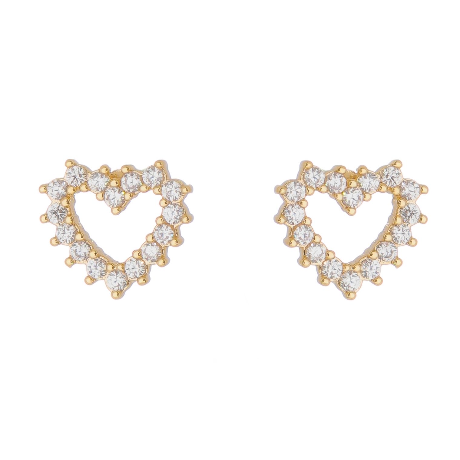 Brinco folheado a ouro 18k coração vazado com zircônias.