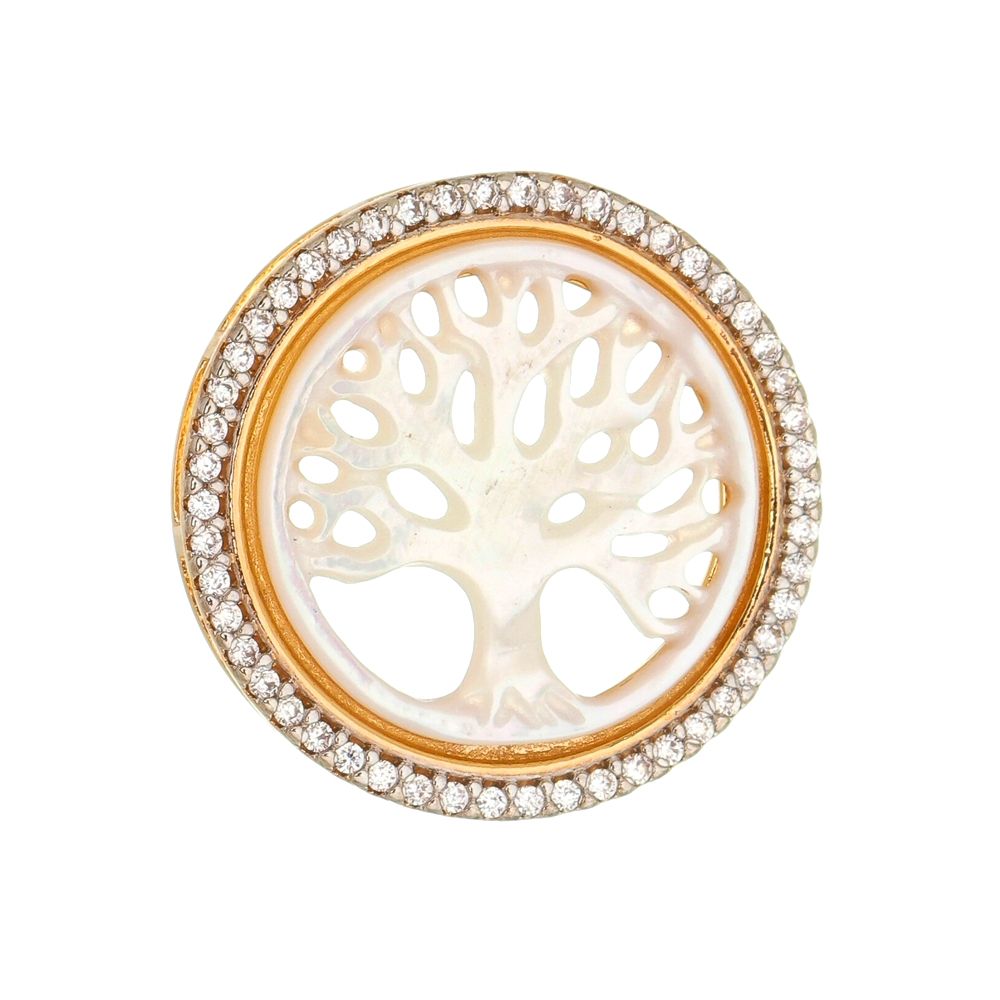 Pingente árvore da vida com madre pérola com zircônias folheado a ouro 18k.