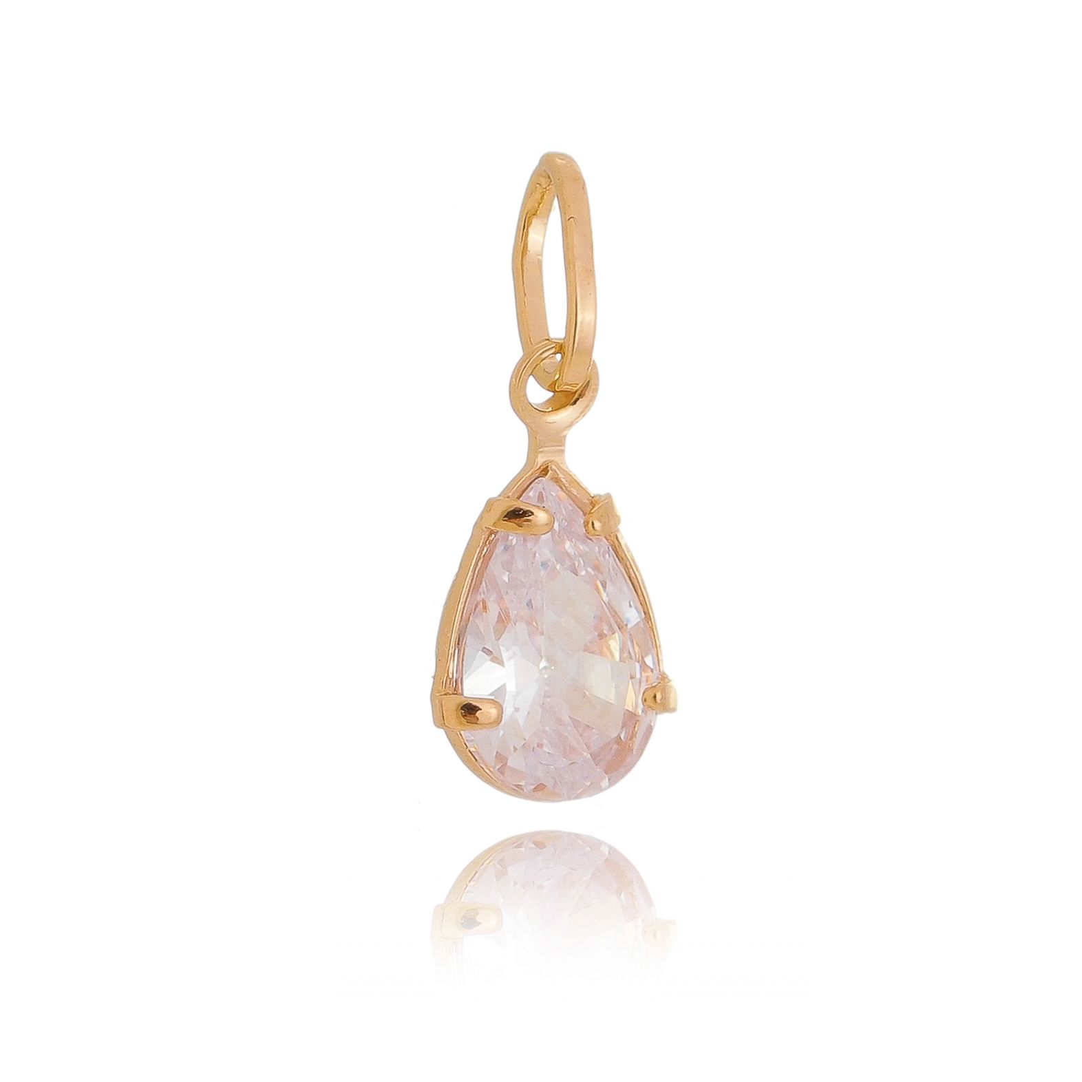 Pingente com zircônia em formato de gota folheado a ouro 18k.
