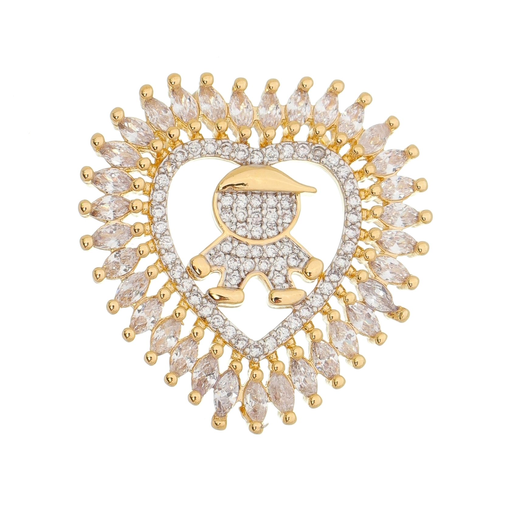 Pingente folheado a ouro 18k mandala em formato de coração com menino e detalhes em zircônias.