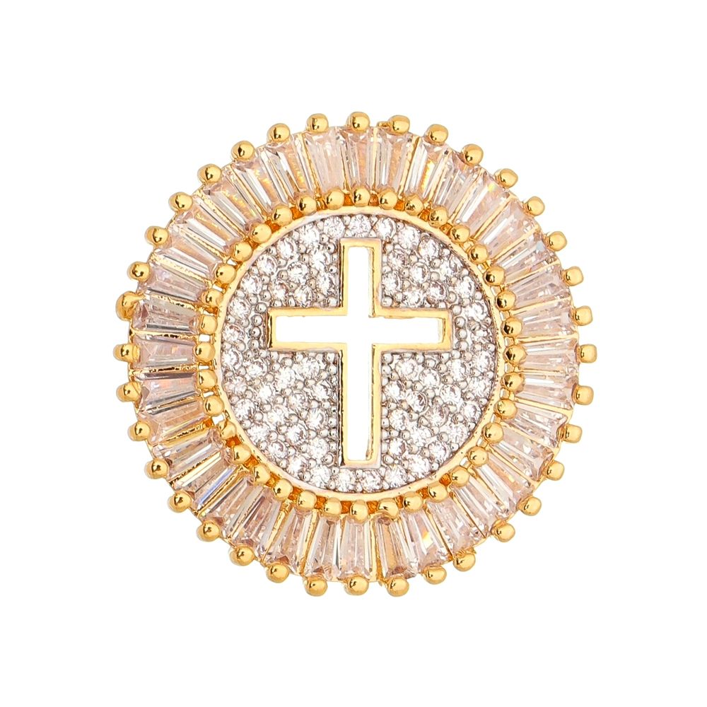 Pingente folheado a ouro 18k mandala cruz com zircônias.