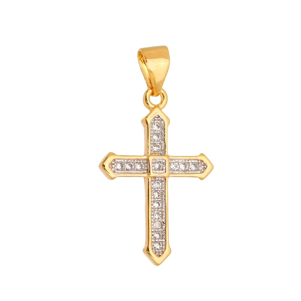 Pingente folheado a ouro 18k cruz cravejada com micro zircônias.