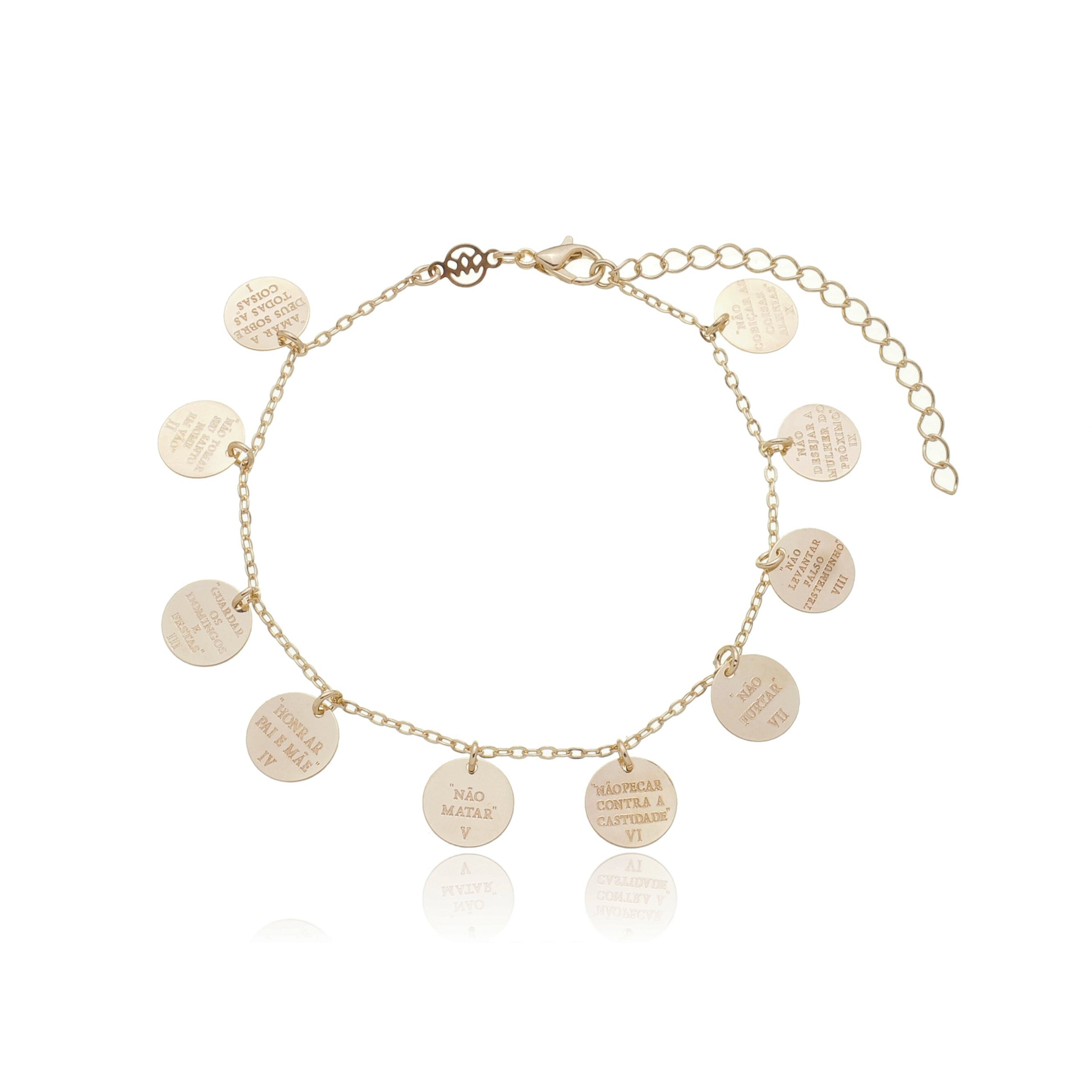 PULSEIRA FOLHEADA A OURO 18K 10 MANDAMENTOS 18 cm