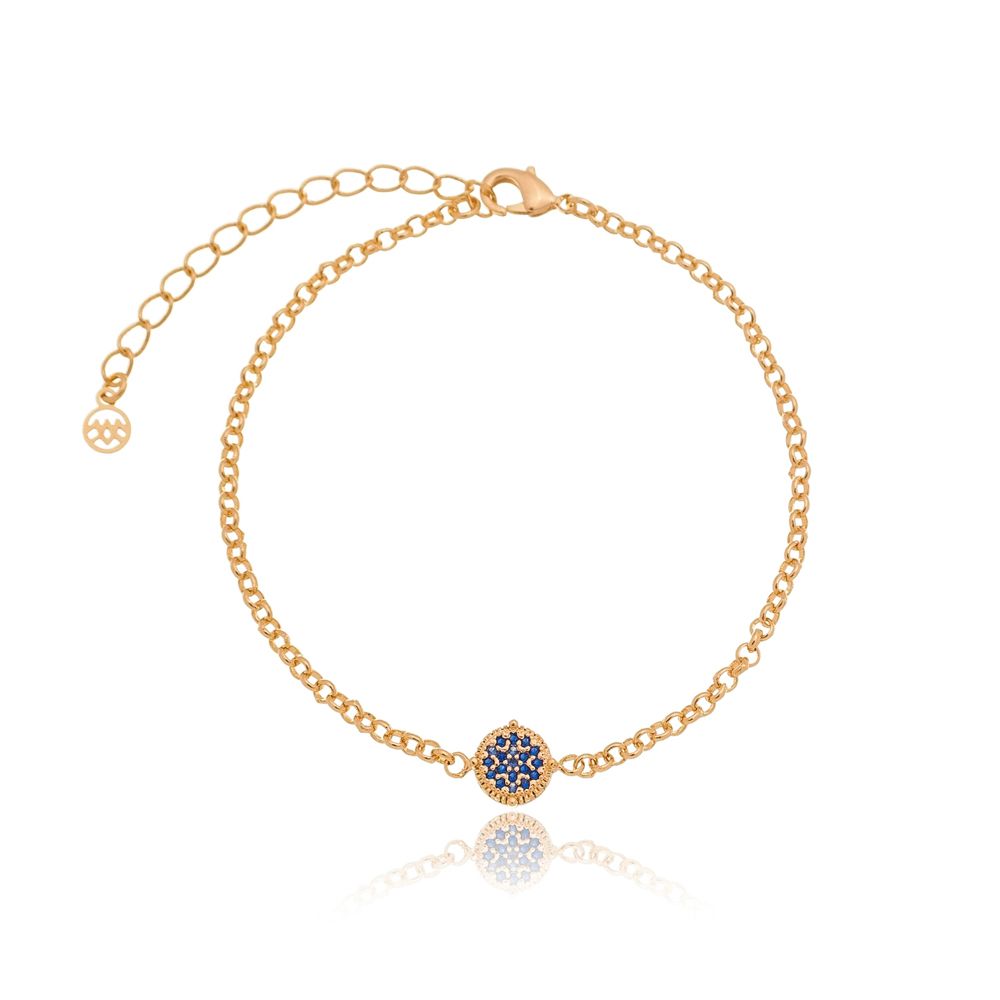 Pulseira folheada a ouro 18k com elos portugueses e zircônias safira.