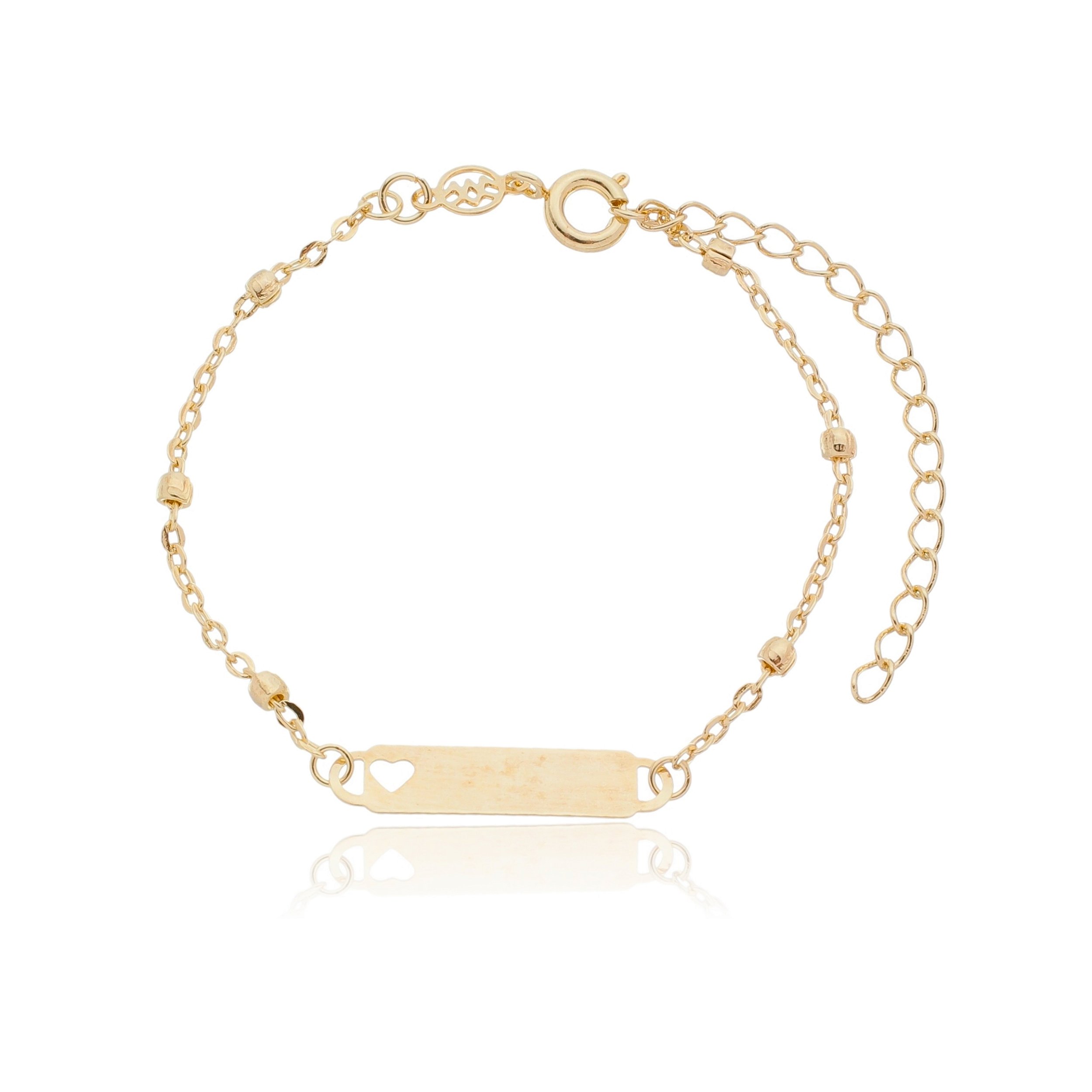 Pulseira infantil chapinha com bolinhas folheada ouro 18k