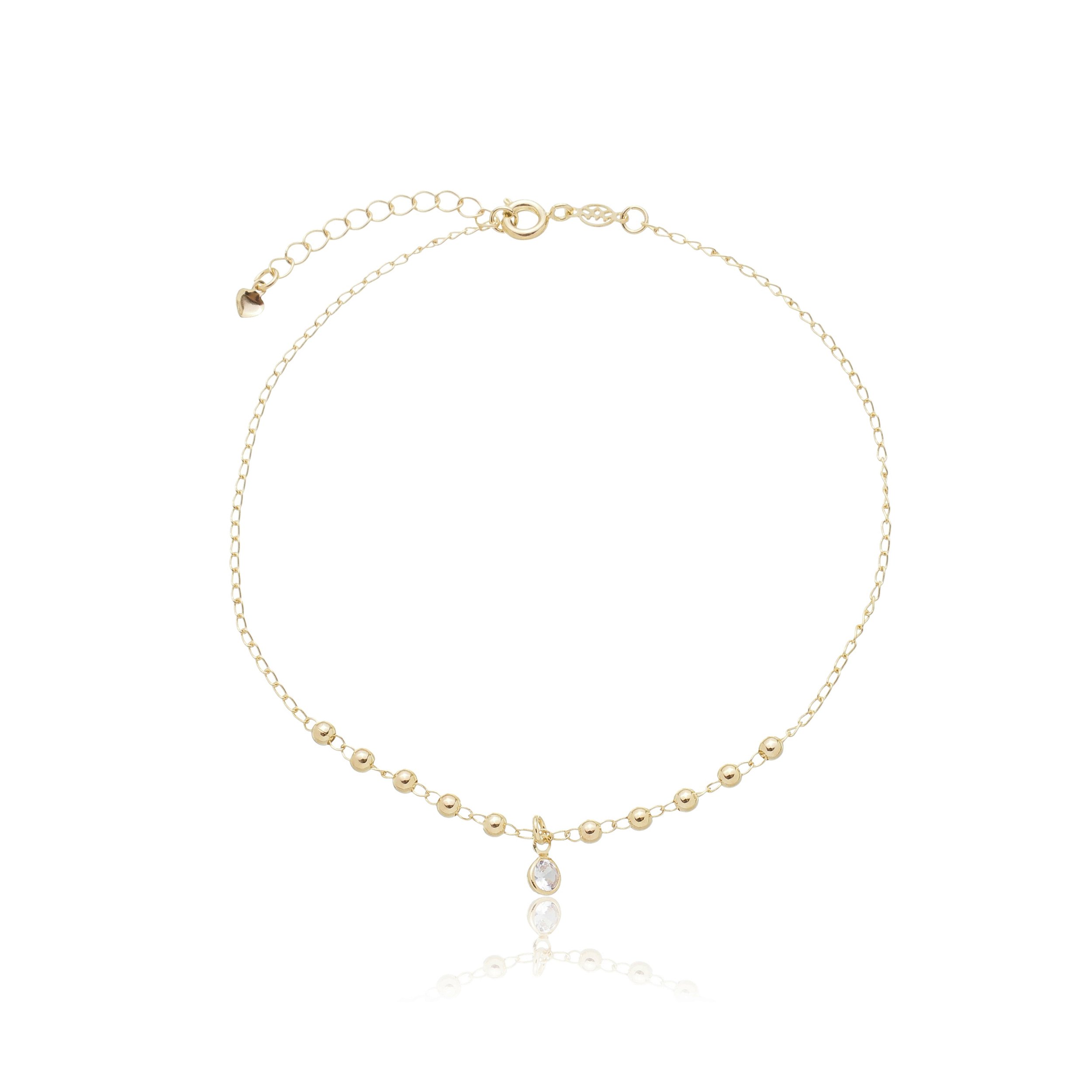 TORNOZELEIRA FOLHEADA A OURO 18K BOLINHAS COM CRISTAL 25cm