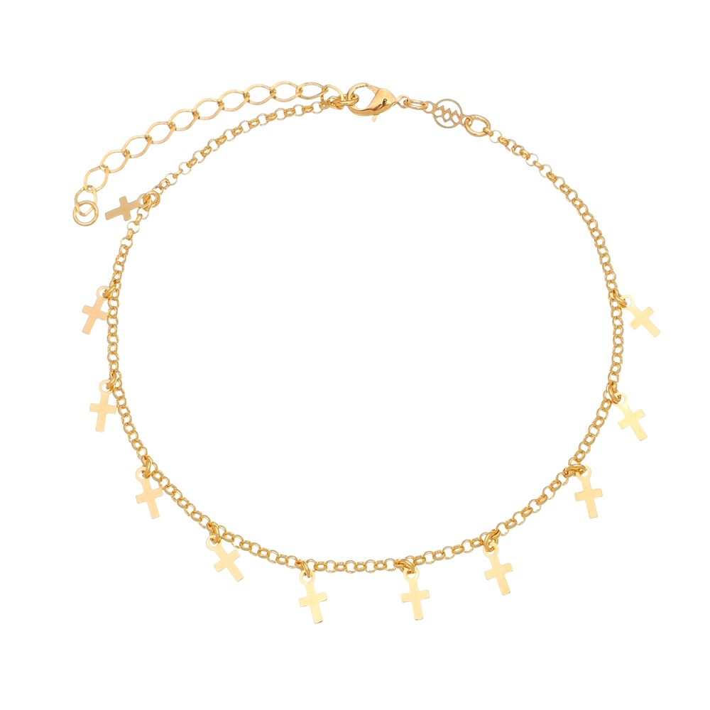 Tornozeleira folheada a ouro 18k cruzes penduradas.
