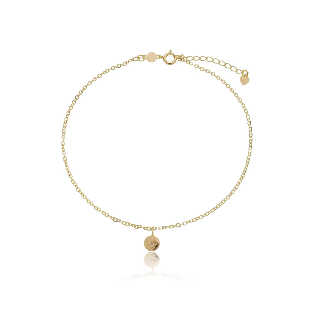 TORNOZELEIRA FOLHEADA A OURO 18K MÃO DE HAMSA COM OLHO GREGO 25cm