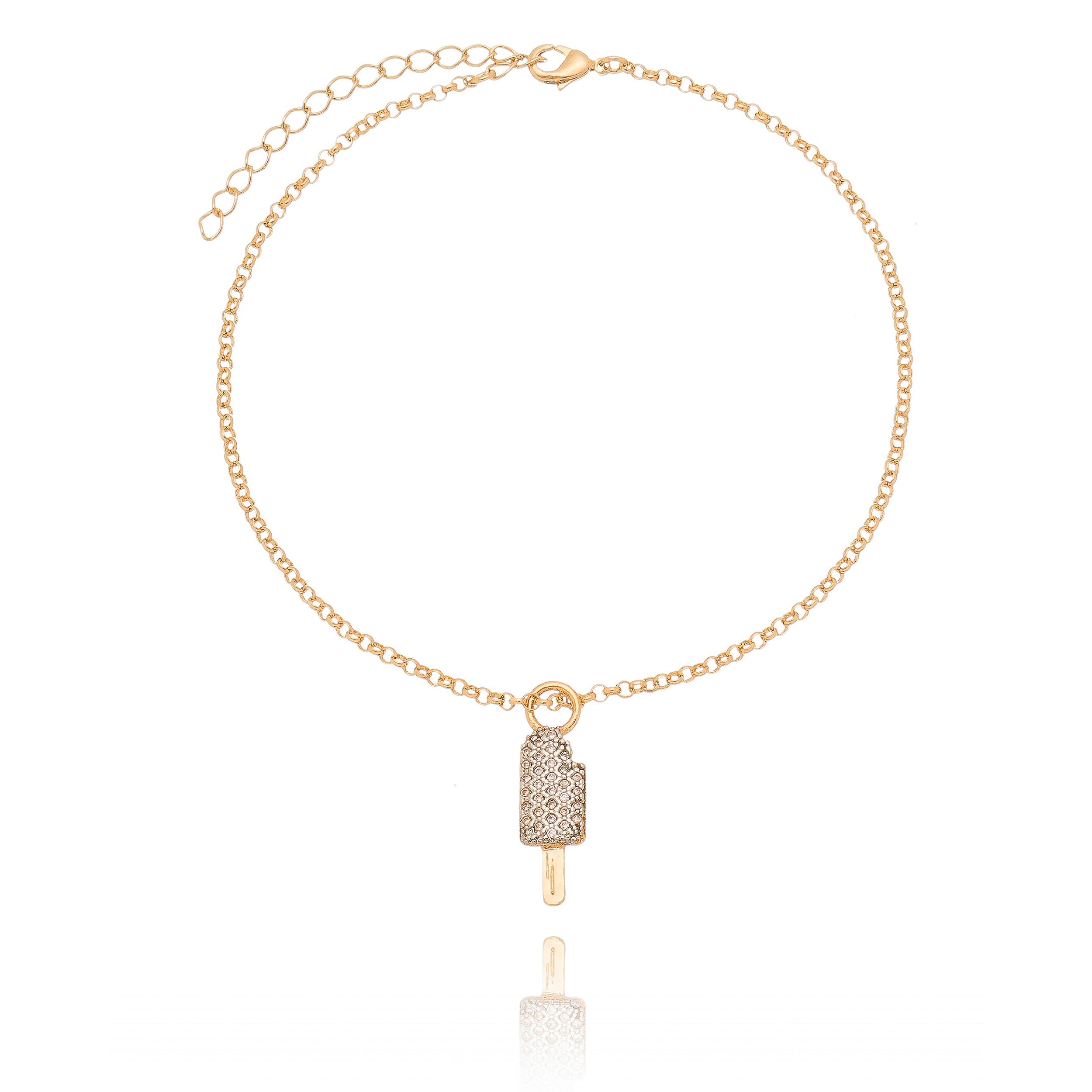 TORNOZELEIRA PICOLÉ FOLHEADA A OURO 18K COM ZIRCÔNIAS