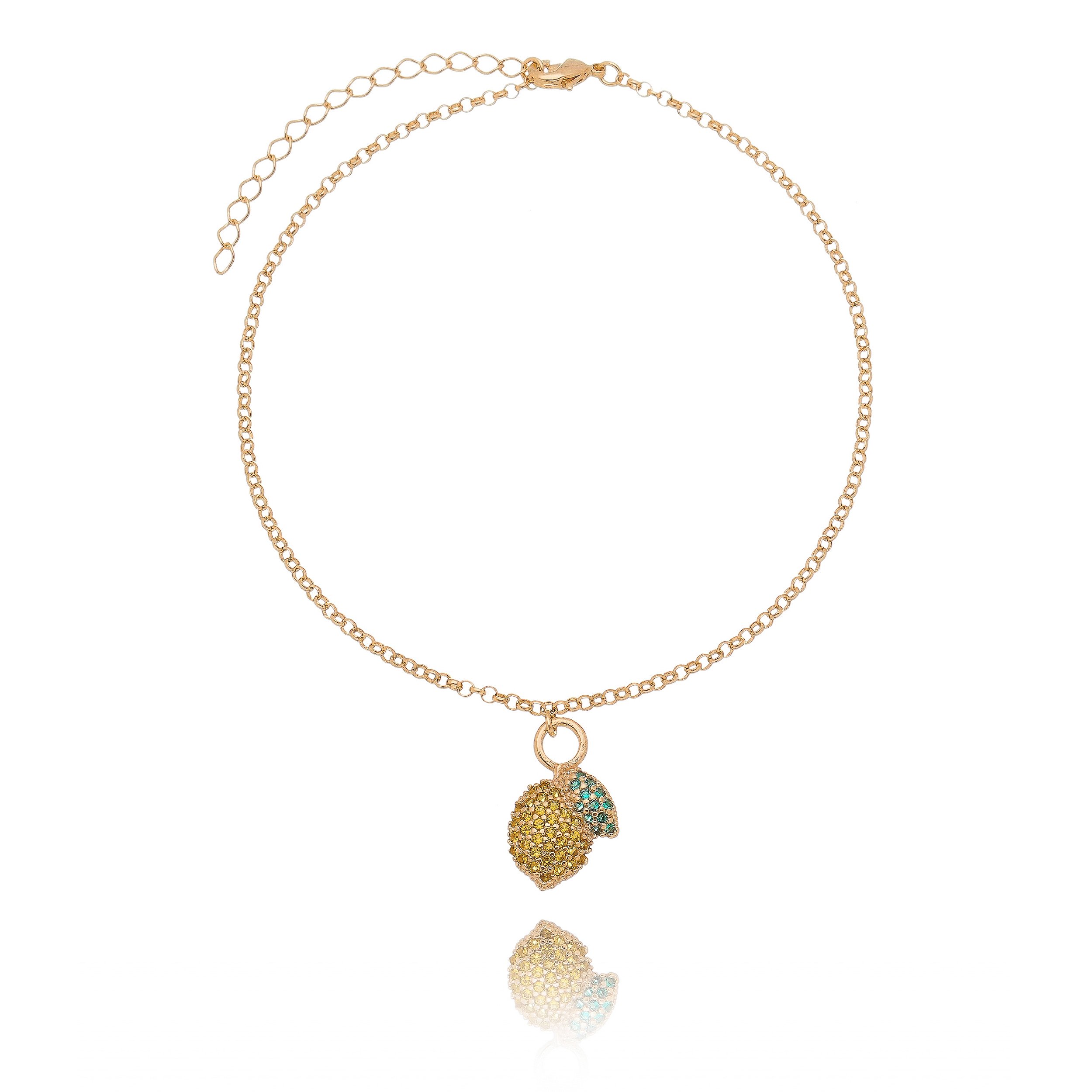 TORNOZELERIA LIMÃO FOLHEADA A OURO 18K COM ZIRCÔNIAS