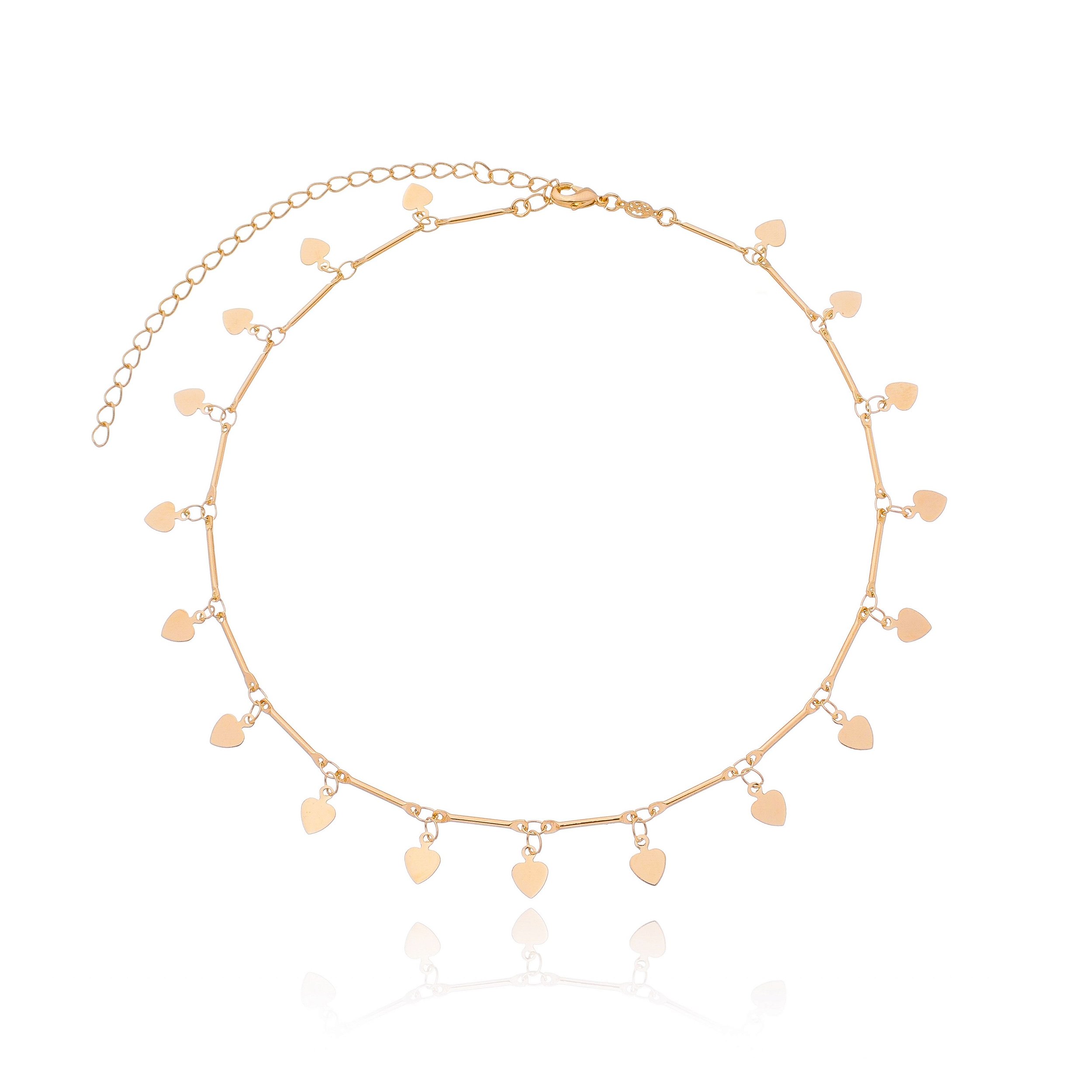 Gargantilha liso coração pendurado folheado a ouro 18k